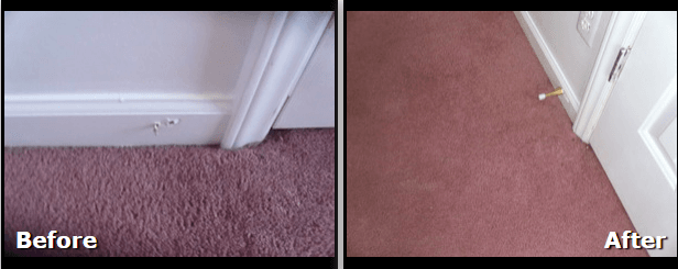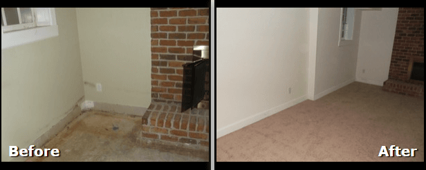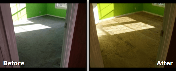 There was no baseboard trim and bare subfloor in this Greensboro home. We completed the room by installing newly painted baseboard trim and carpeting.