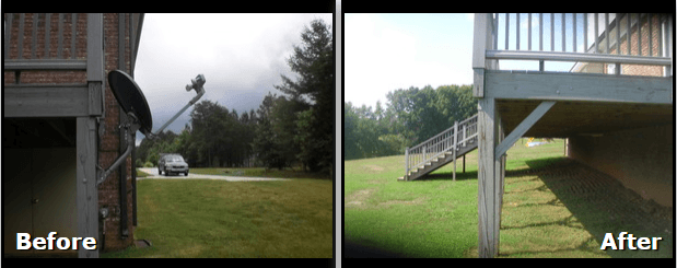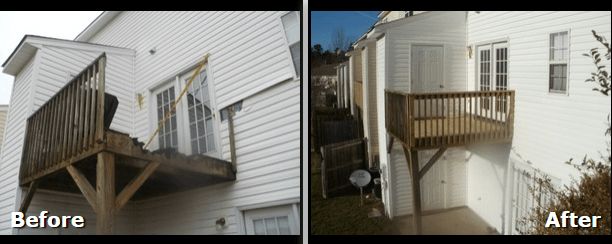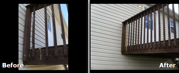 Several of the pickets on this deck had broken off. We replaced the missing pickets so that the deck would look complete and be much safer for small children or dogs to walk around on.