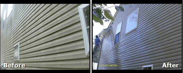 This vinyl sided home just needed to be power washed to show off it's great color.